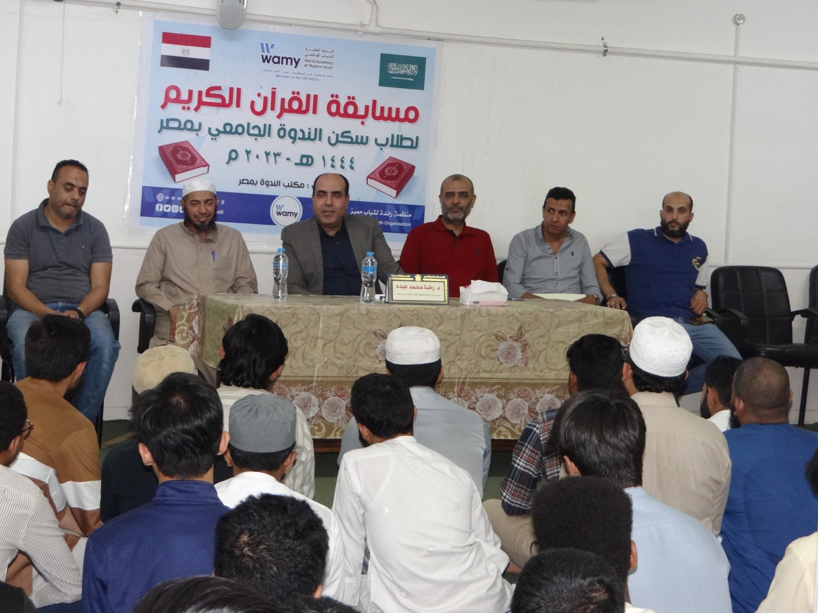 في إطار أنشطة مكتب الندوة العالمية للشباب الإسلامي بمصر وفي جو أسري بهيج تم تكريم طلاب سكن الندوة الجامعي الفائزين بمسابقة القرآن الكريم التي أقيمت بسكن الندوة الجامعي وحضر الحفل سعادة الدكتور/ رضا محمد عبده - مدير مكتب الندوة العالمية للشباب الإسلامي بمصر وفضيلة الشيخ/ هاشم حنفي – المسئول عن تحفيظ القرآن الكريم لطلاب سكن الندوة والسادة مشرفي السكن وموظفي المكتب والطلاب المقيمين بسكن الندوة والذين يمثلون 15 جنسية مختلفة منتسبين لأربعة جامعات حكومية هي ( جامعة الأزهر وجامعة عين شمس وجامعة القاهرة وجامعة حلوان ) وتقوم الندوة برعايتهم تعليميا وثقافيا واجتماعيا ورياضيا وماديا داخل مصر.