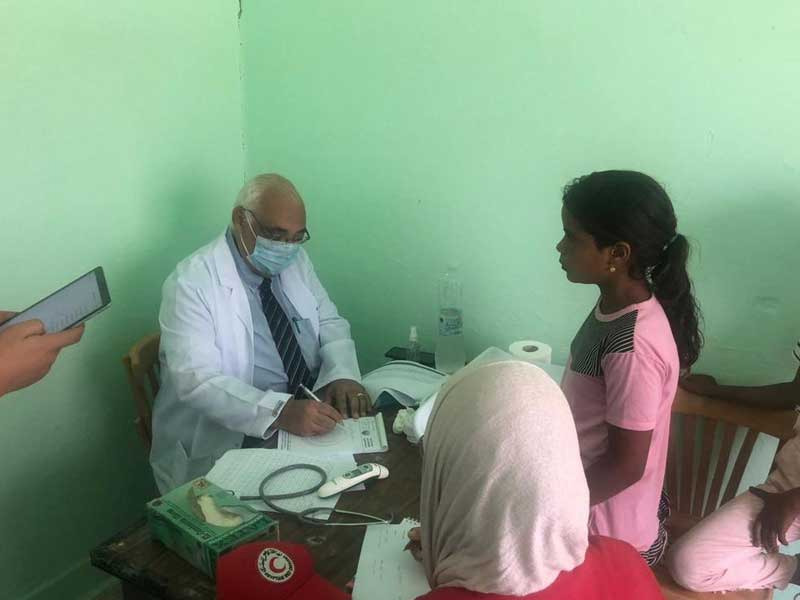 أن الأطباء أعضاء القافلة أجروا الكشف الطبي على ١٨٤ حالة، بواقع ٣٧ حالة أطفال، ٢٩ حالة جلدية، ٣٣ حالة عظام، ٤٦ حالة باطنة، ٣٩ حالة رمد، إلى جانب ٩ حالات أشعة عادية.