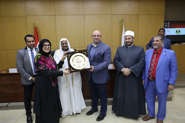 وفي ختام تسلم المحافظ الدكتور محمد هاني غنيم درع المجلس الإسلامي العالمي للدعوة والإغاثة،تقديراً لجهود في دعم أنشطة وفعاليات المنظمة والمجلس،علاوة على تكريم عدد من السيدات المتميزات اللائي اجتزن التدريب وتسليمهن شهادات تقدير ومكافأت مادية مقدمة من المجلس الإسلامي العالمي للدعوة والإغاثة،بجانب تكريم بعض القائمبن والمشاركين في القوافل من المنطمة والوحدة المحلية.