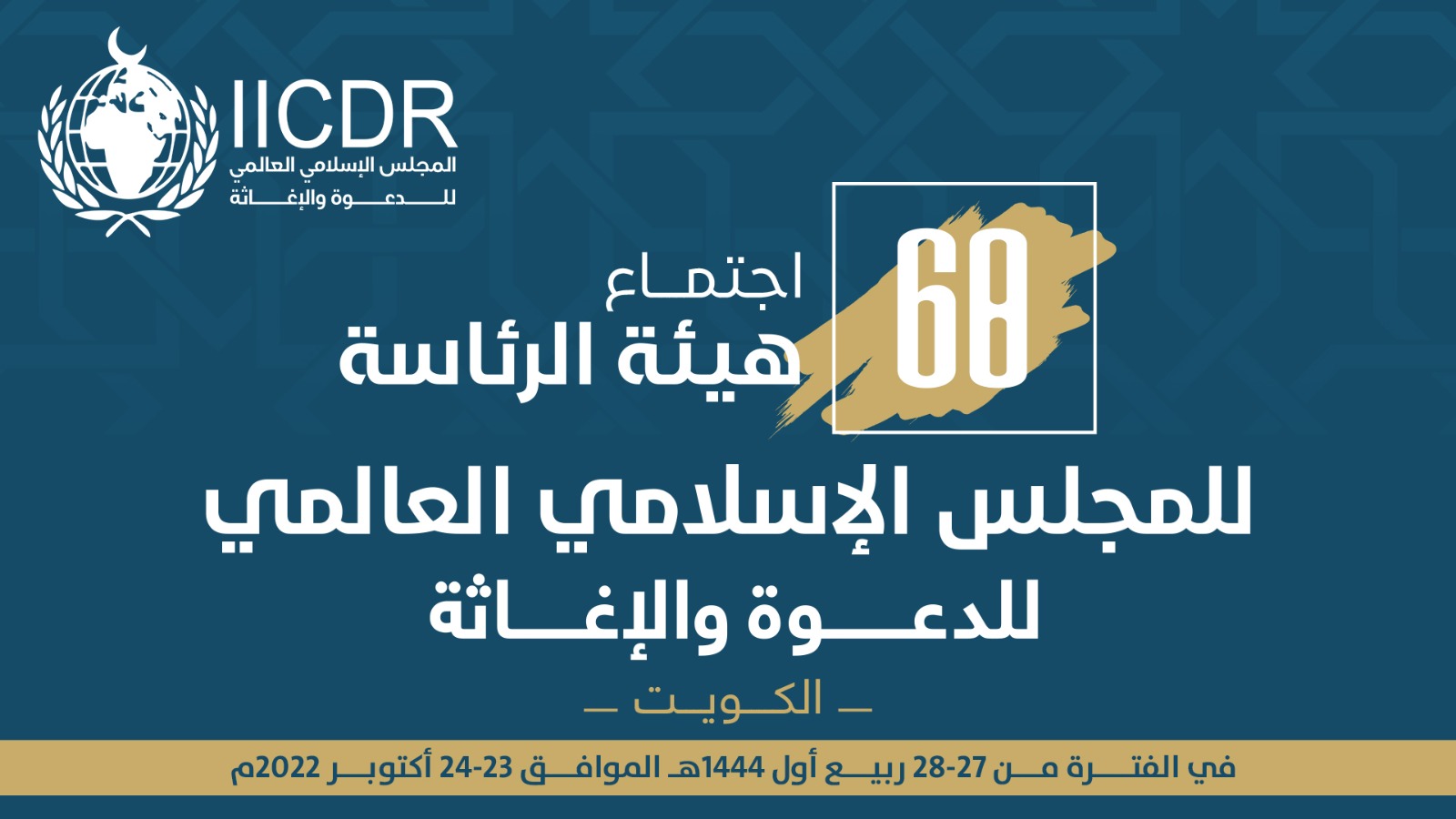 برعاية كريمة من الهيئة الخيرية الإسلامية العالمية بالكويت، يعقد المجلس الإسلامي العالمي للدعوة والإغاثة اجتماع هيئة الرئاسة الثامن والستين بالكويت الفترة من 23-24 أكتوبر 2022 الجاري