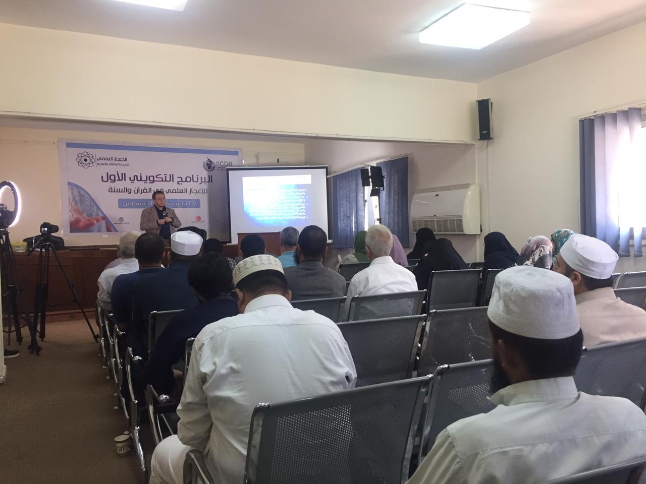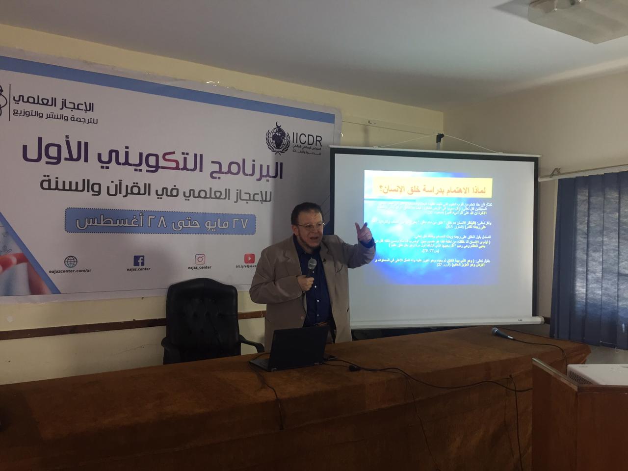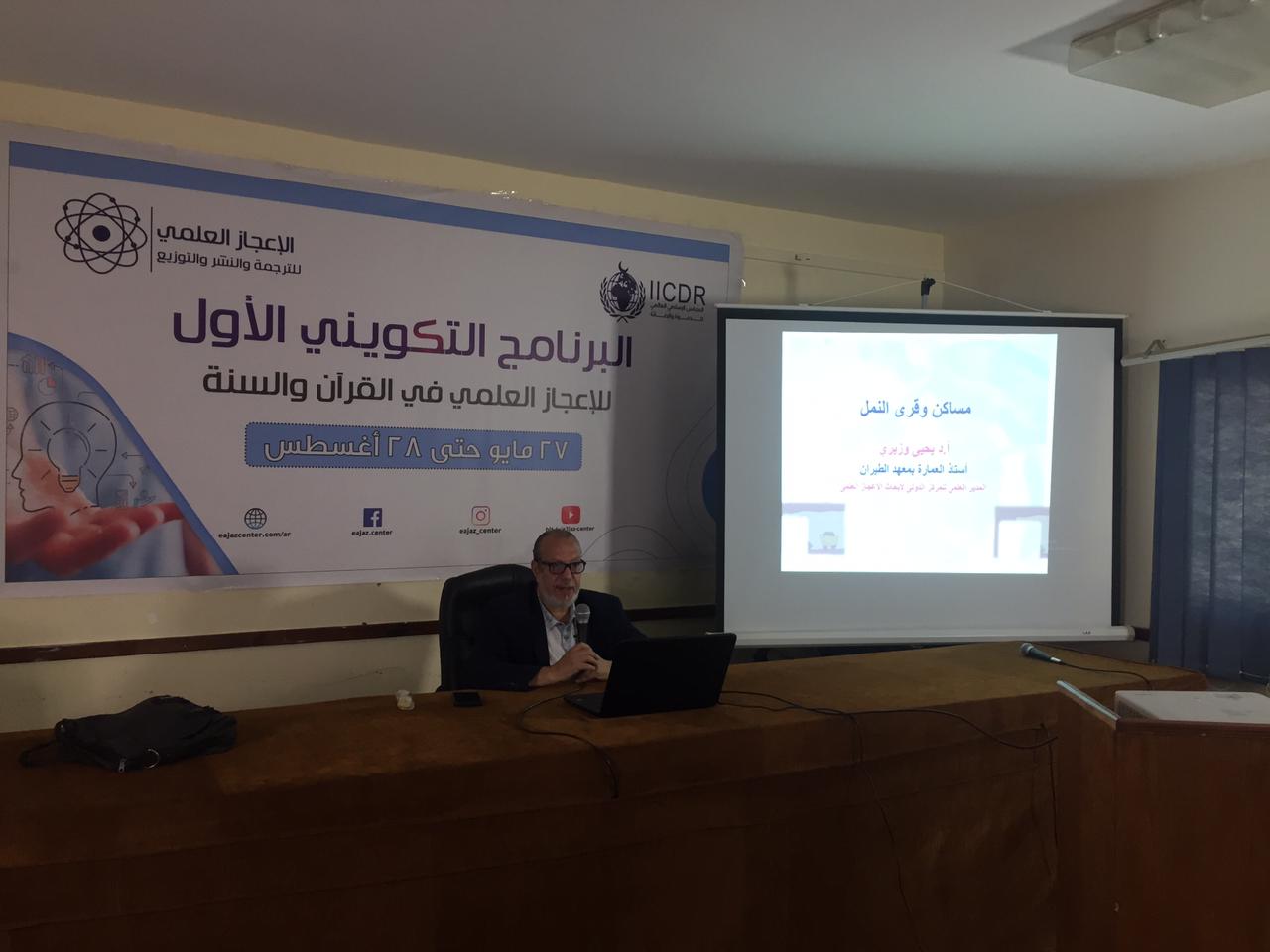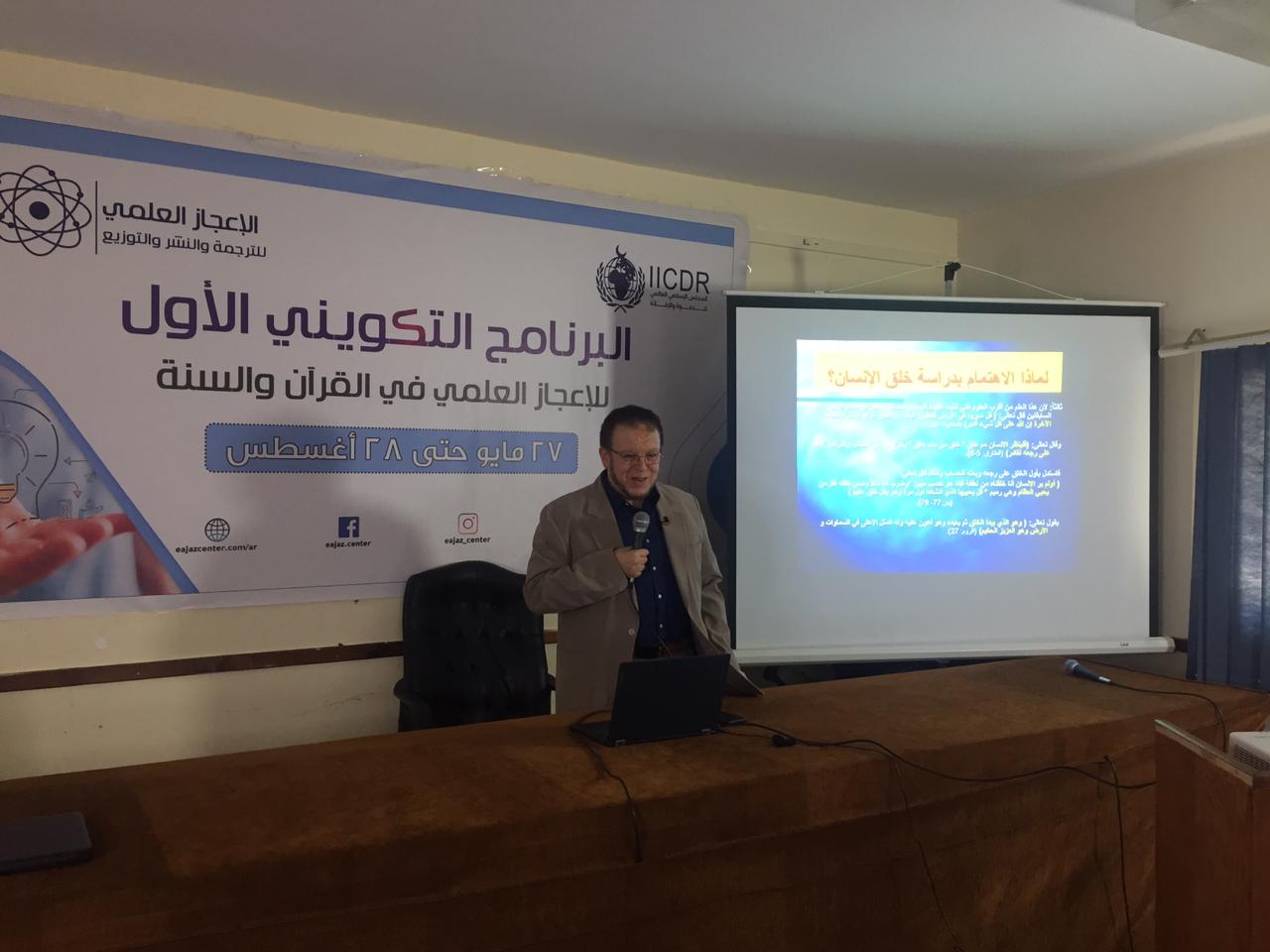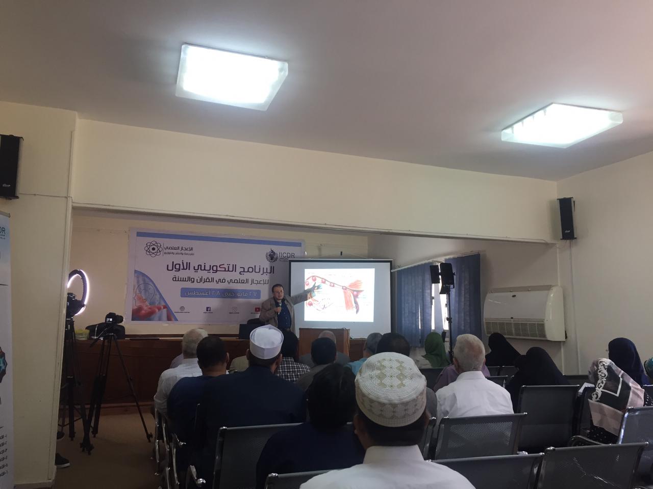 جانبا من فعاليات البرنامج التكويني الأول للإعجاز العلمي في القرآن والسنة، حيث عقدت الأمانة العامة محاضرتين، حاضر فيهما كلا من: الدكتور محمد عبد اللطيف العجرودي، والأستاذ الدكتور يحيى حسن وزيري.