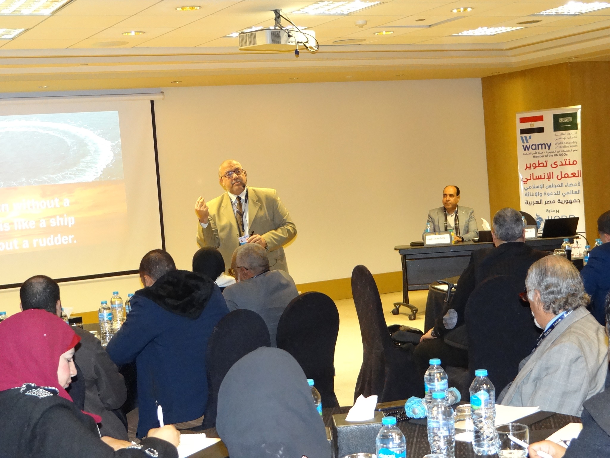يحاضر أ.د. عصام الرفاعي – أستاذ التخطيط الاستراتيجي بالجامعة الإسلامية بالقاهرة، في اليوم الثاني من فعاليات منتدى تطوير العمل الإنساني لأعضاء المجلس الإسلامي العالمي للدعوة والإغاثة، والذي ينظمه مكتب الندوة بمصر بحضور 50 مشاركاً من ممثلي 20 جمعية ومؤسسة عاملة في مجال العمل الإنساني والخيري، بفندق انتركونتننتال بالقاهرة لمدة يومين.