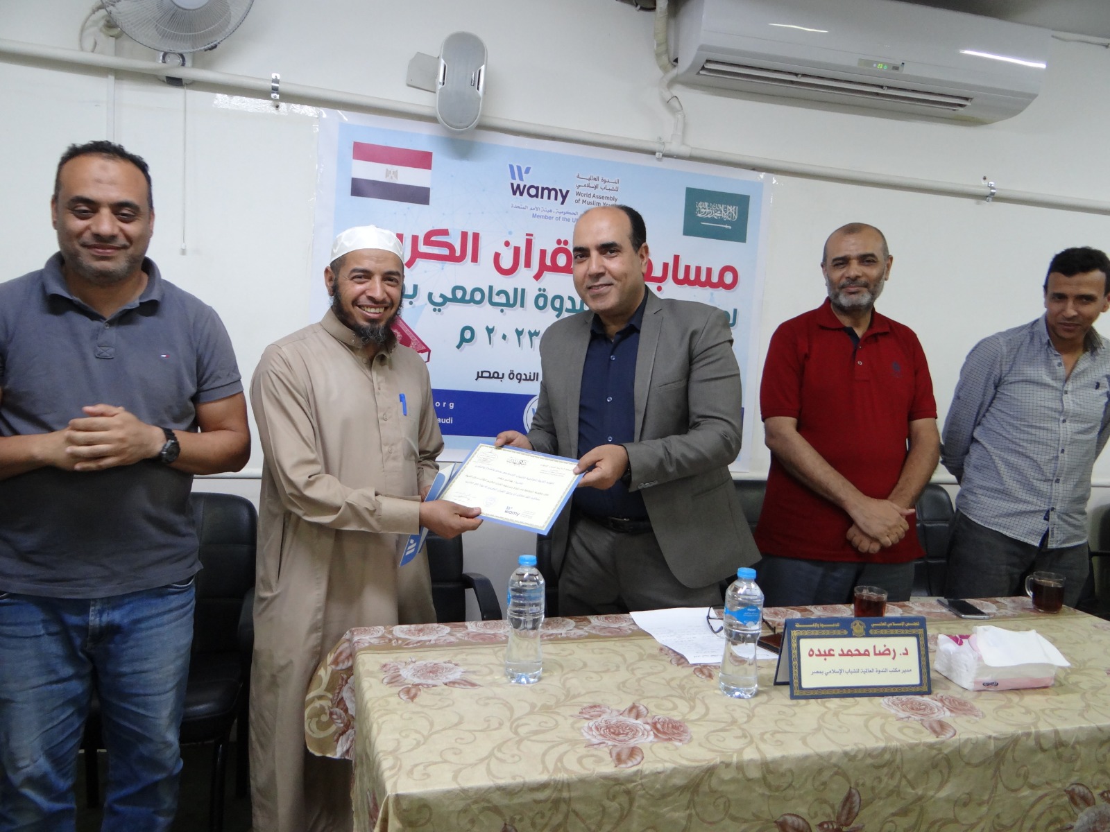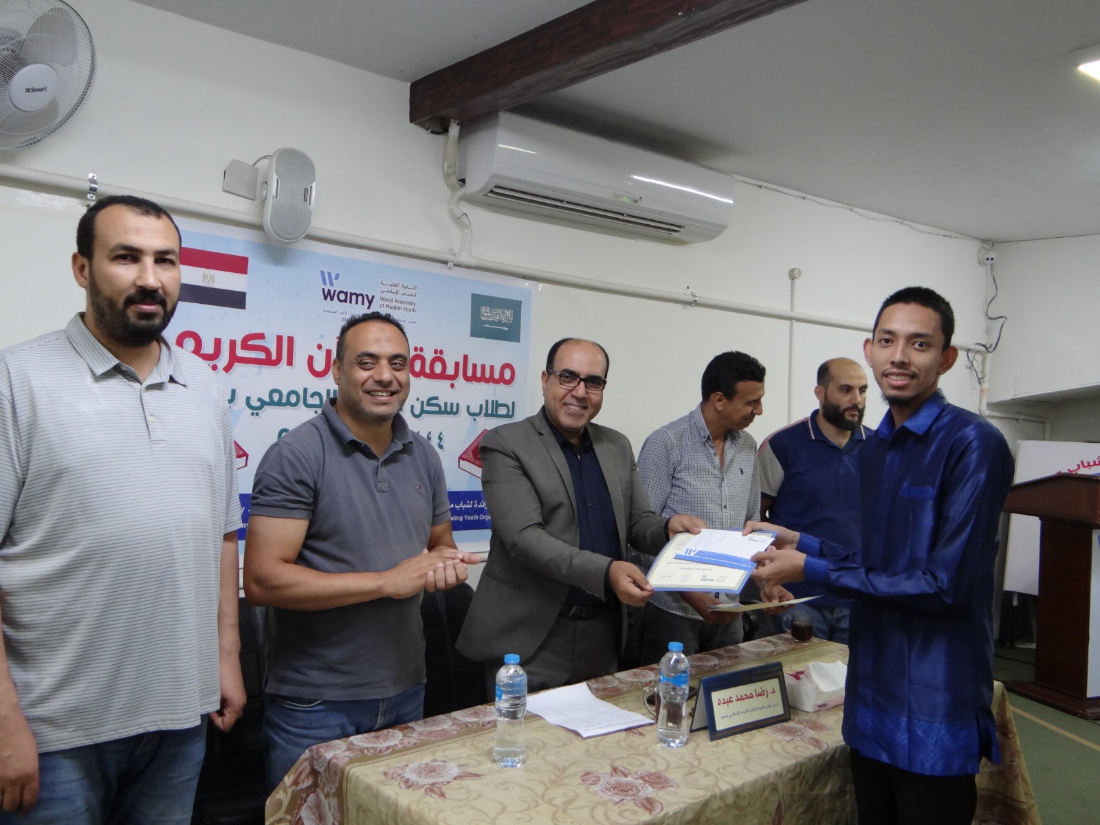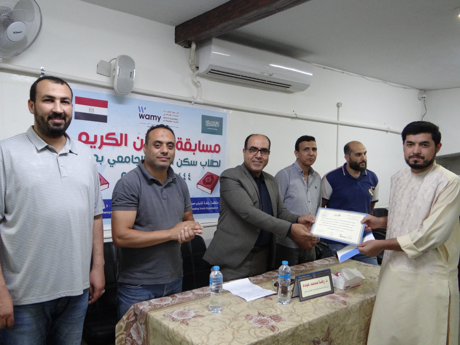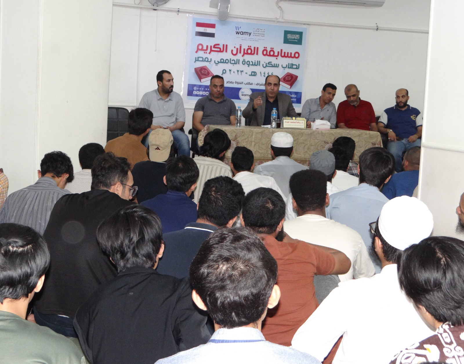 في إطار أنشطة مكتب الندوة العالمية للشباب الإسلامي بمصر وفي جو أسري بهيج تم تكريم طلاب سكن الندوة الجامعي الفائزين بمسابقة القرآن الكريم التي أقيمت بسكن الندوة الجامعي وحضر الحفل سعادة الدكتور/ رضا محمد عبده - مدير مكتب الندوة العالمية للشباب الإسلامي بمصر وفضيلة الشيخ/ هاشم حنفي – المسئول عن تحفيظ القرآن الكريم لطلاب سكن الندوة والسادة مشرفي السكن وموظفي المكتب والطلاب المقيمين بسكن الندوة والذين يمثلون 15 جنسية مختلفة منتسبين لأربعة جامعات حكومية هي ( جامعة الأزهر وجامعة عين شمس وجامعة القاهرة وجامعة حلوان ) وتقوم الندوة برعايتهم تعليميا وثقافيا واجتماعيا ورياضيا وماديا داخل مصر.